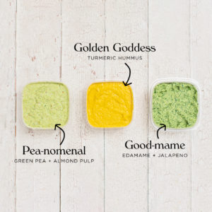 • Have you tried our Pea-Nomenal Dip yet? If you have, you’ll know it’s pretty darn tasty. Not only that, it’s made with our leftover almond pulp from our in-house almond milk. (We make a lotta milk, which means there’s a lotta pulp. Perfect for our tasty dips!) Other works in progress for our almond pulp include granola, vegan cheese, and crackers.